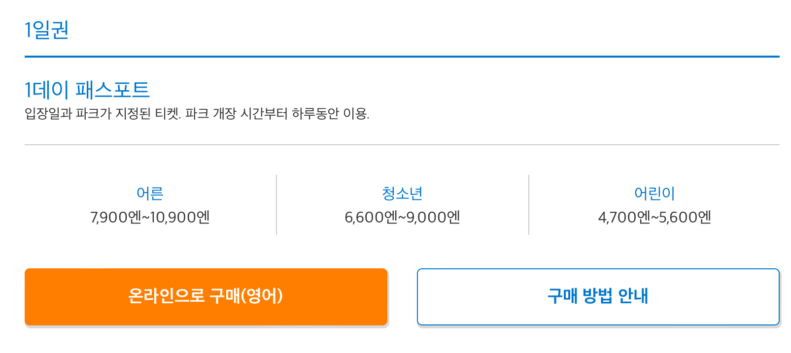 1일권 - 1 데이패스포트 : 개장시간부터 하루동안 이용할 수 있는 티켓입니다.