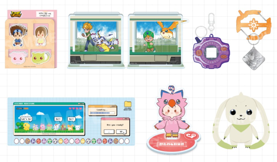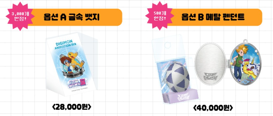 디지몬 어드벤처를 대표하는 콤비 태일& 아구몬의 모습을 담은 금속 배지와 매튜& 파피몬을 추억하는 분들을 위한 귀여운 알모양의 펜던트입니다. 각각 한정 수량이므로 구매하려면 오픈런이 필요할 듯합니다.