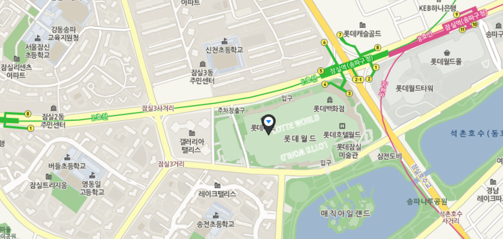 - 주요 시설 : 롯데월드 어드벤처 - 실내 놀이공원으로 다양한 놀이기구와 공연이 열립니다. / 매직아일랜드 - 야외 공간으로 스릴 넘치는 놀이기구가 많습니다.