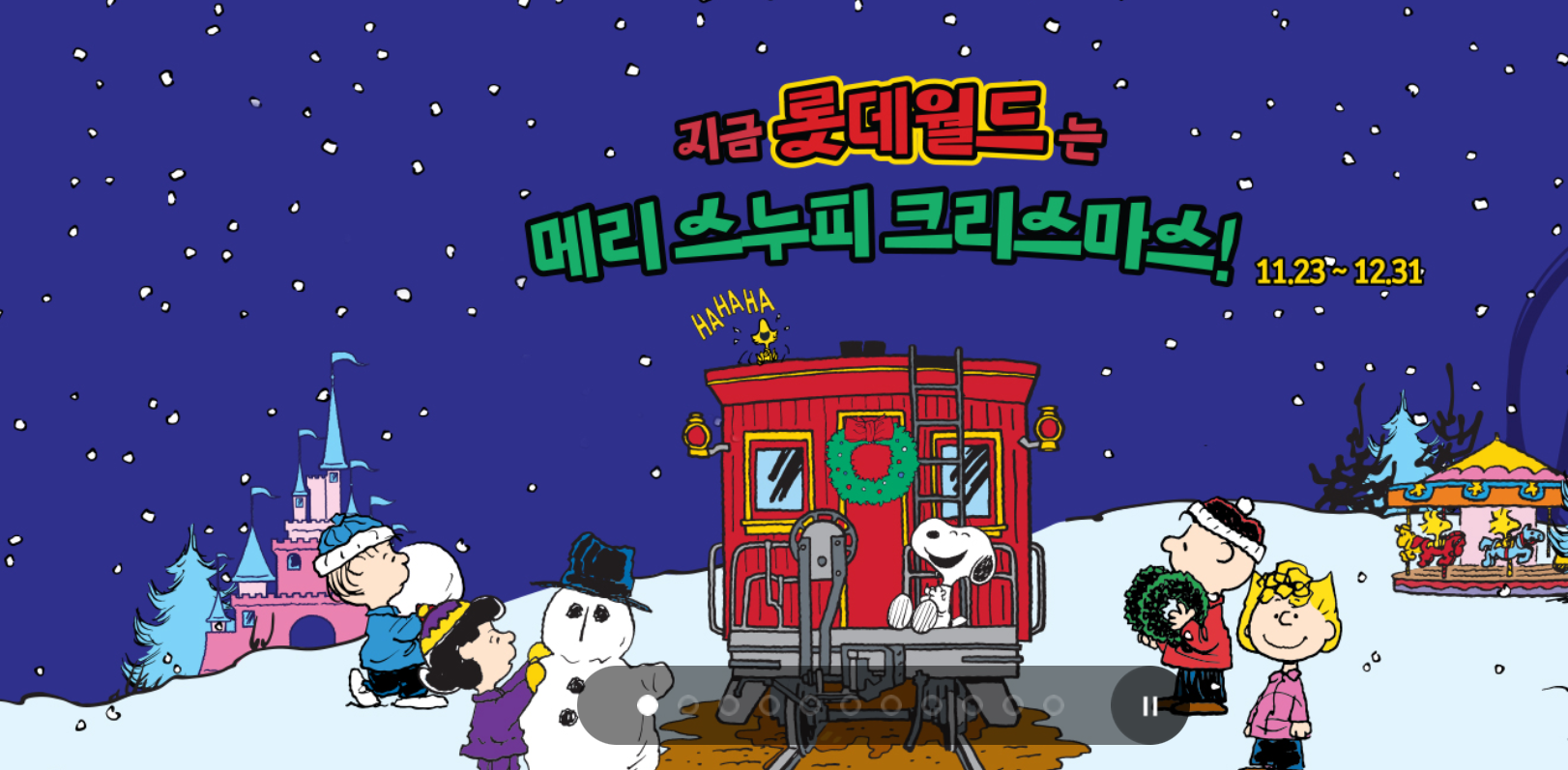 지금은 크리스마스를 맞는 스누피 크리스마스 이벤트와 12월 31일 자정에는 롯데월드어드벤처만의 특별한 카운트다운을 준비하고 있다고 하니 관심 있는 분들은 미리 예매하셔서 2024년의 특별한 카운트다운을 경험하시길 바랍니다.