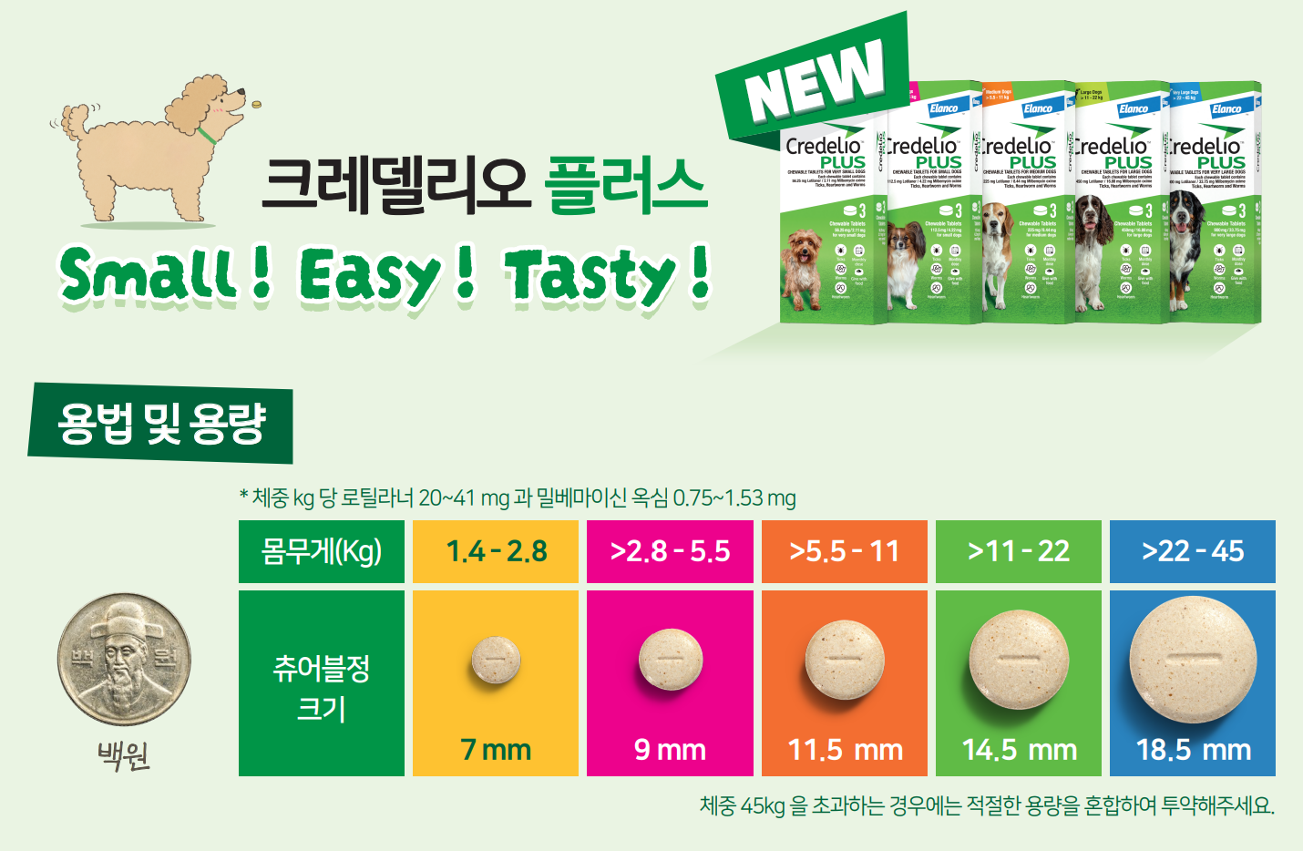 - 제품 형태: 7mm 크기의 츄어블 정제로, 고기향이 첨가되어 있어 강아지들이 거부감 없이 쉽게 복용할 수 있습니다.