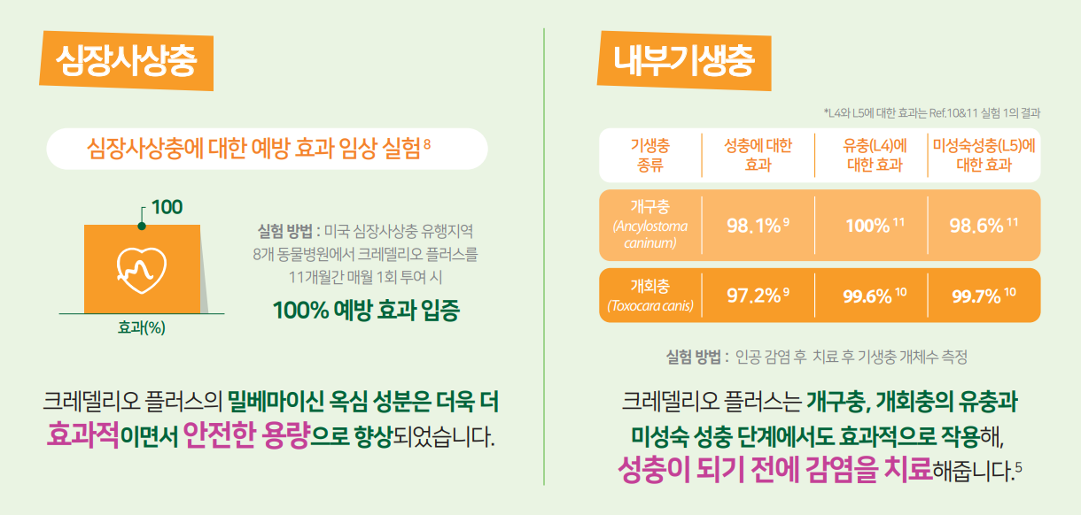 - 특히 내부 기생충은 유충 및 미성숙 성충 단계에서부터 예방하여 기생충이 성충으로 성장하기 전에 문제를 차단합니다.