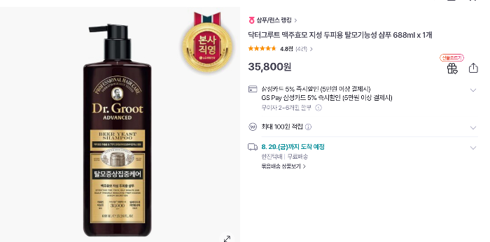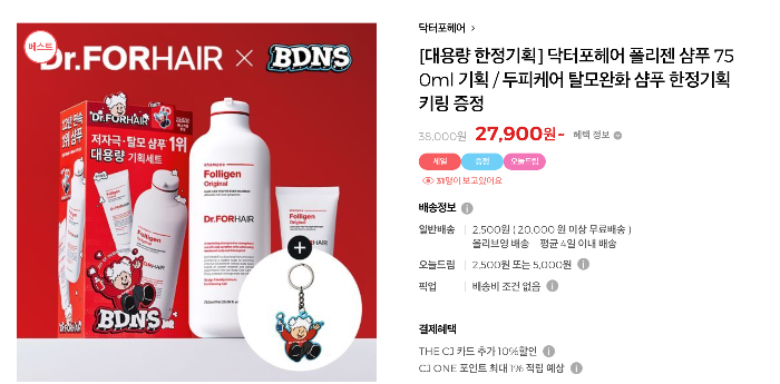 - 탈모 증상 완화에 도움을 주는 기능성 샴푸로 바이오틴, 나이아신아마이드, 징크피리치온, 판테놀 주요 성분 함유