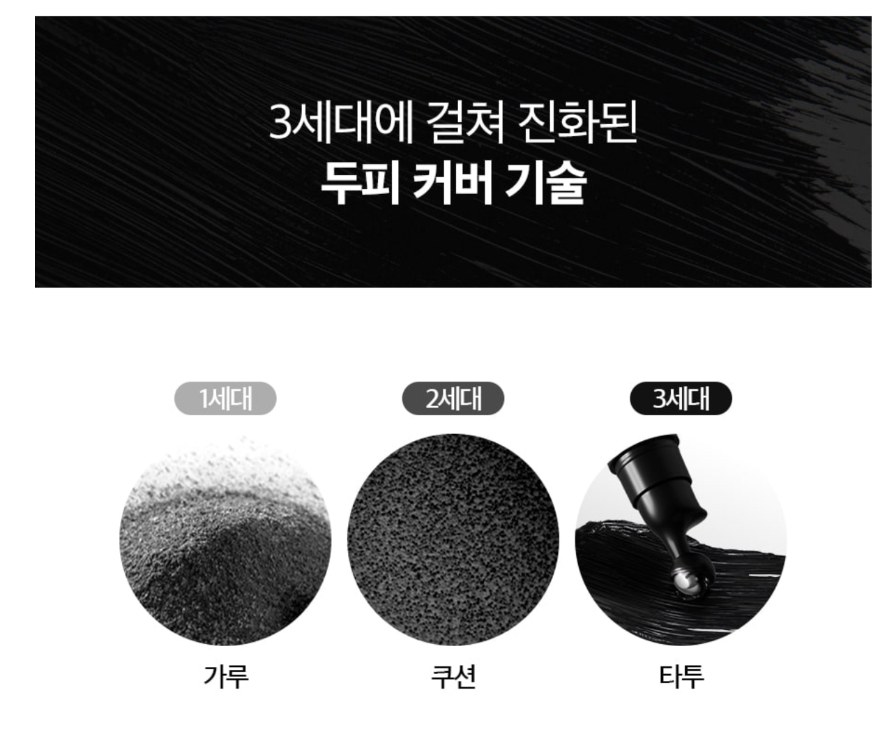 잘 알고 있는 것처럼 두피 커버는 가루타입에서 쿠션타입으로 진화했으며 앞으로는 타투가 대세가 될 것으로 예상합니다.